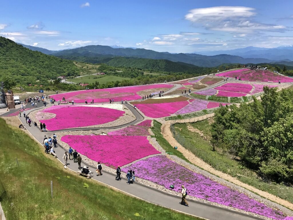 芝桜は午前中の斜光が立体的。観光リフトで上がり、山頂から時計回りに下ると人の流れと逆で歩きやすく、花面を見下ろす写真も撮りやすいです。