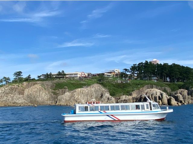 若狭フィッシャーマンズ・ワーフ発、外海の断崖「大門・小門」まで約60分の周遊。削られた奇岩、洞門、滝を次々と望み、日本海ならではのダイナミックな海蝕景観を船上から楽しみます。