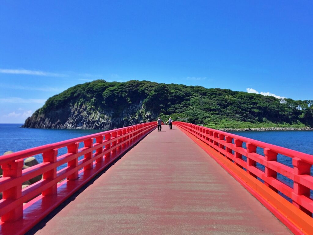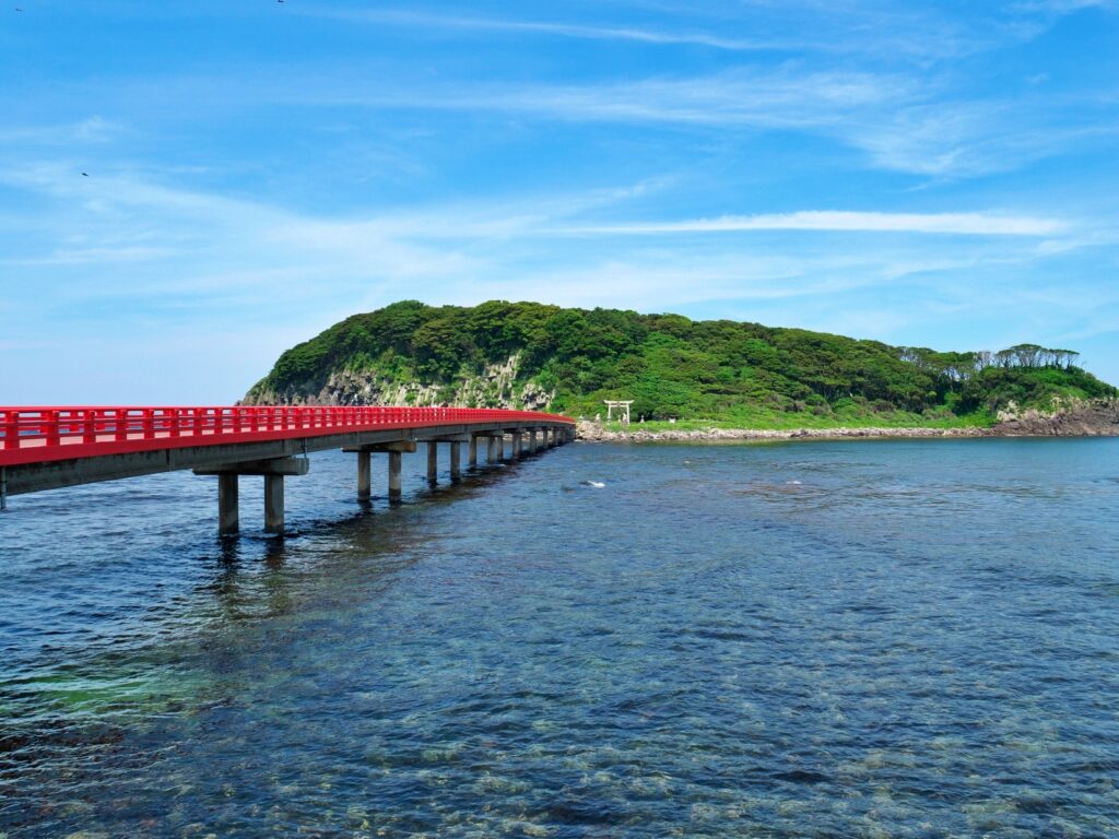 東尋坊沖に浮かぶ周囲約2kmの小島。朱塗りの橋を渡り、森林と海食崖に囲まれた環状遊歩道を歩けば、日本海と溶岩台地の荒々しさ、社叢の静けさが同居する神秘的な景観に出会えます。