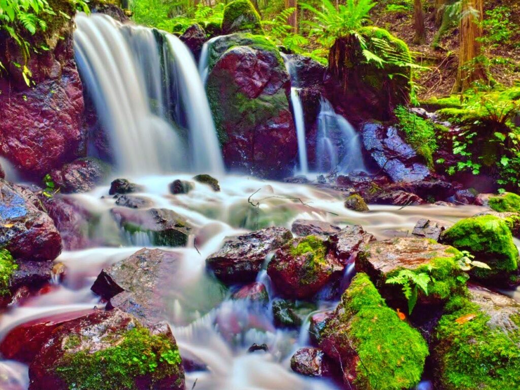年中約13℃の湧水が林間に広がる名瀑・名水。低い段差を幾筋にも分かれて流れ、苔と清流の涼感ある景観が楽しめます。駅から徒歩圏で、家族連れでも歩きやすいのが魅力。