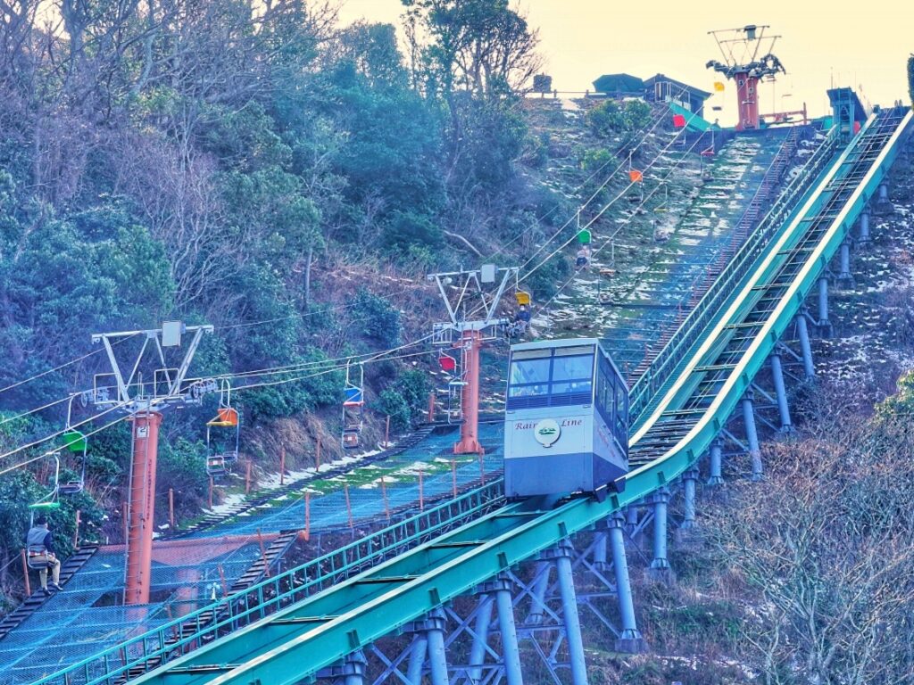 山頂公園はケーブル・リフト利用。最終上り16:30(3–11月)、16:00(12–2月)。アクセス道路は夜間通行止(8:00–18:00目安)。駐車料金設定あり。最新は公式で確認。