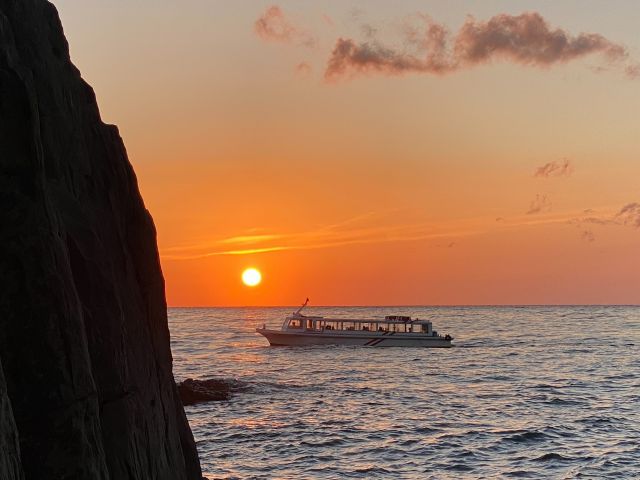 福井県を代表する景勝地、東尋坊は、国の名勝・天然記念物にも指定されている柱状節理が見られる断崖です。断崖の上からは、雄島や越前海岸を一望でき、その壮大な景色を楽しめます。遊歩道も整備されており、散策しながら自然の美しさを満喫できます。さらに、東尋坊観光遊覧船に乗り、海上から断崖を見上げると、陸上とはまた違った迫力満点の景色を楽しめます。