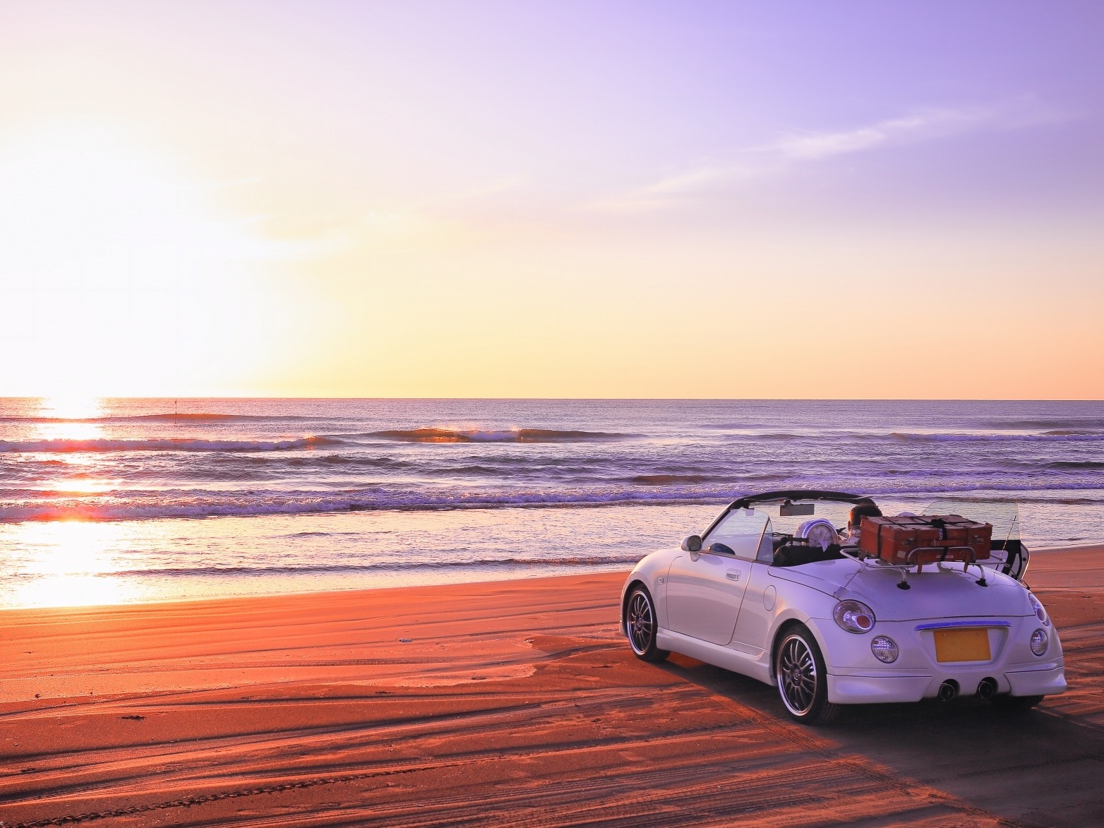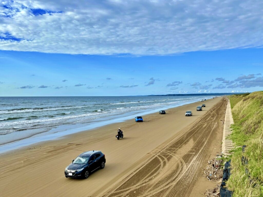 波打ち際を車で走れる日本唯一の砂浜。きめの細かい砂が締まり、海と水平線を間近に感じられる爽快な海岸景観です。歩いての散策だけでも非日常感に包まれます。