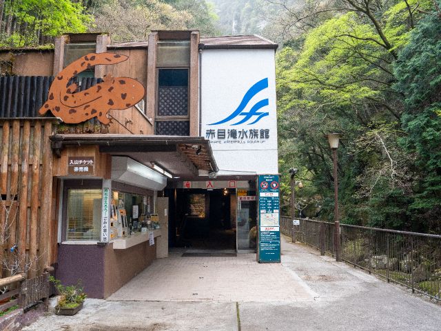 特徴: 数々の滝と渓谷美を楽しめる自然豊かな施設、滝壺に生息するオオサンショウウオを観察できる水族館