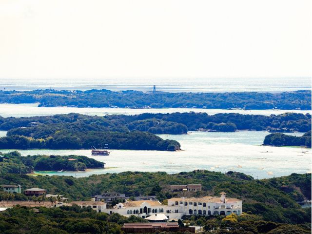 標高140mの高さから、複雑に入り組んだリアス海岸と真珠筏が浮かぶ英虞湾を一望できる、志摩随一のフォトスポットです。